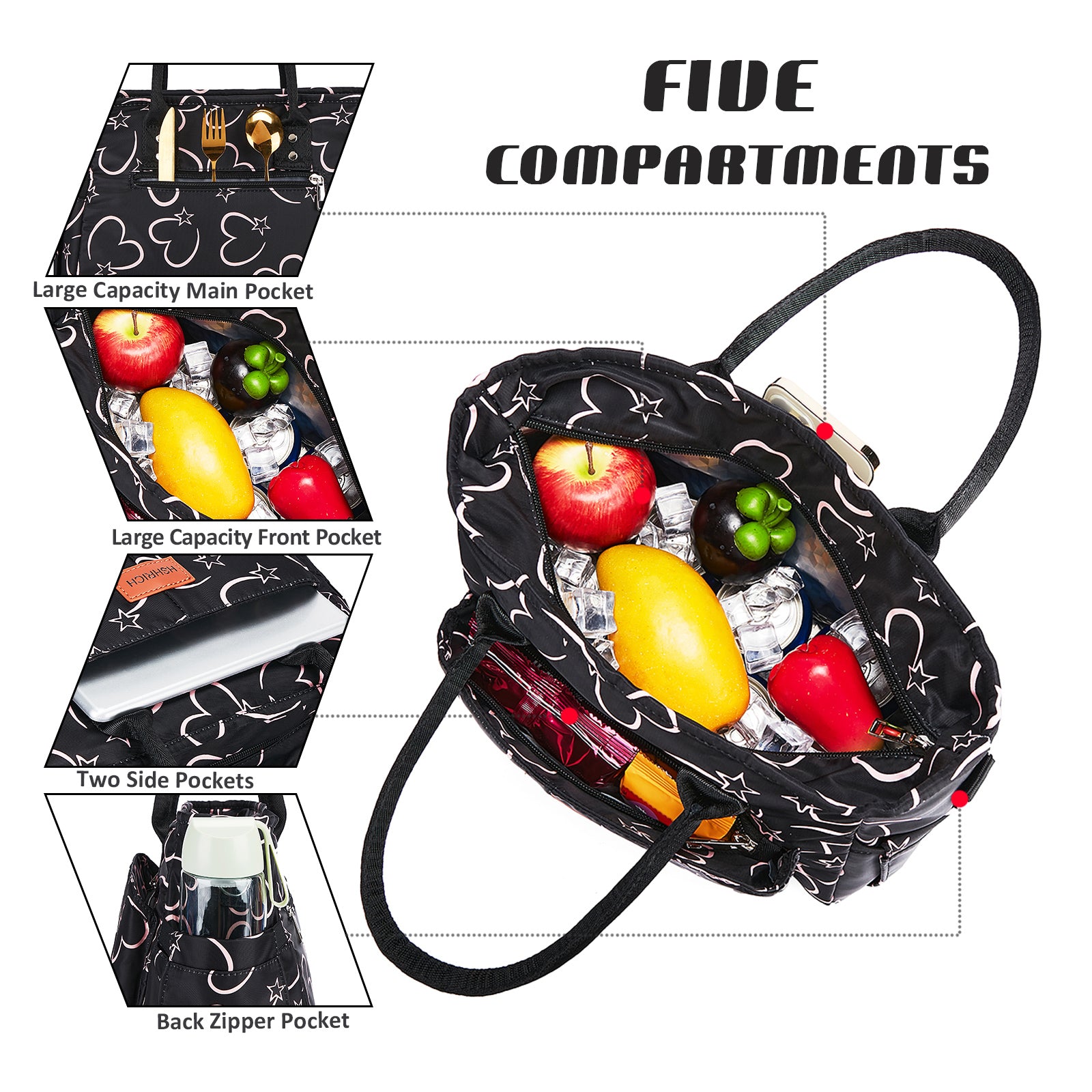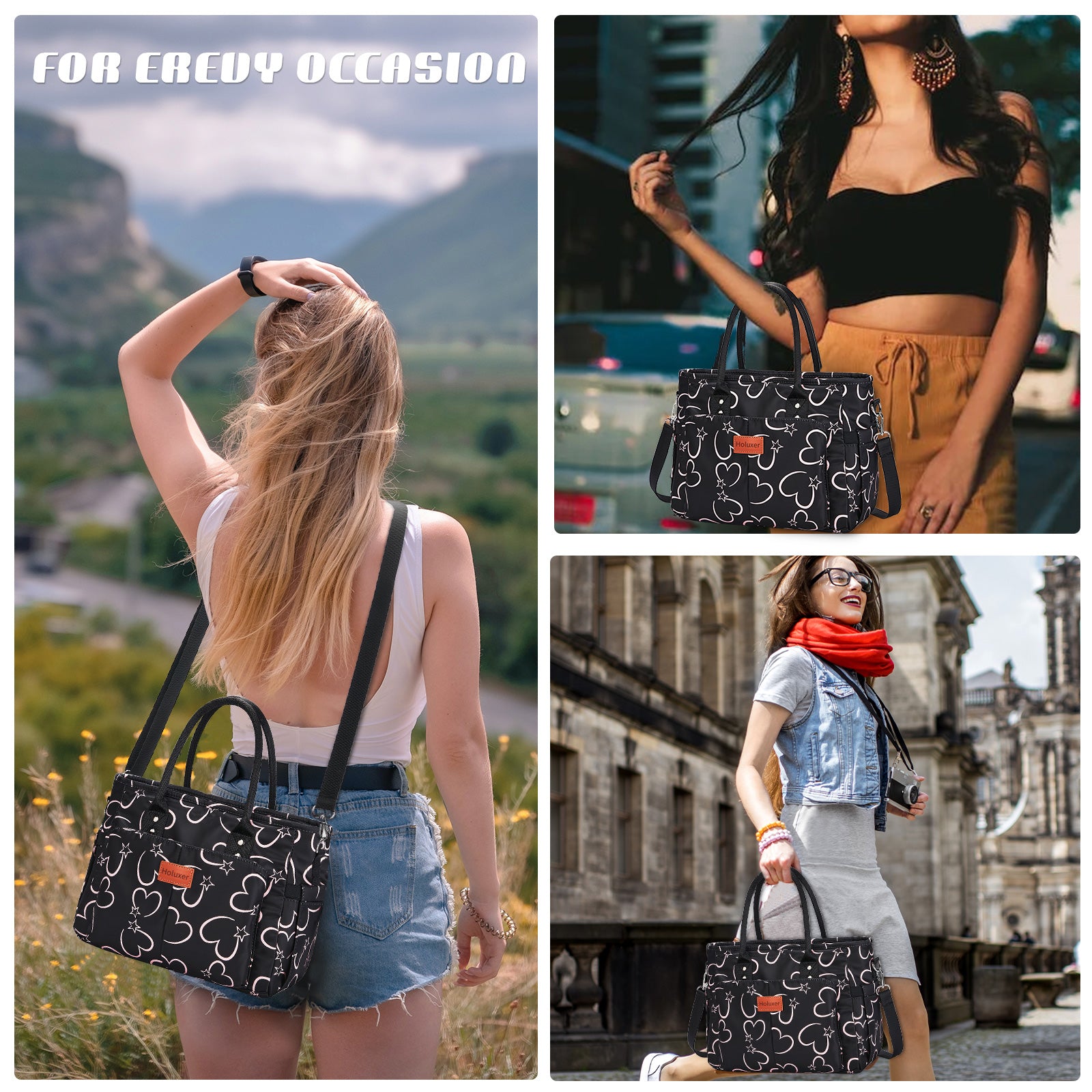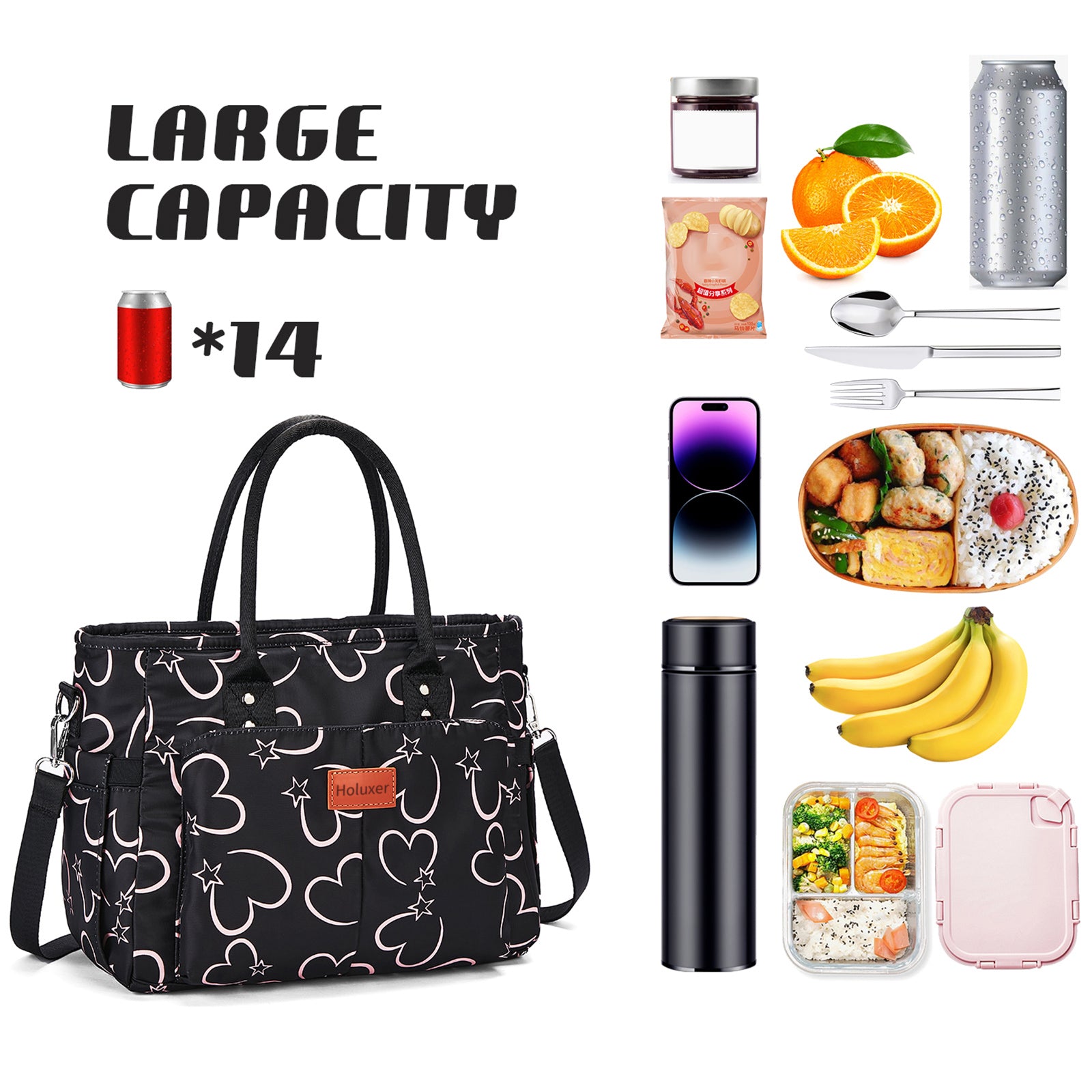 Holuxer Cute Lunch Bags for Women, Insulated Lunch Box for Work, Large Leakproof Cooler Purse with Side Pockets & Removable Shoulder Strap Womens Handbag Tote Bag for Shopping Picnic Beach (Love)