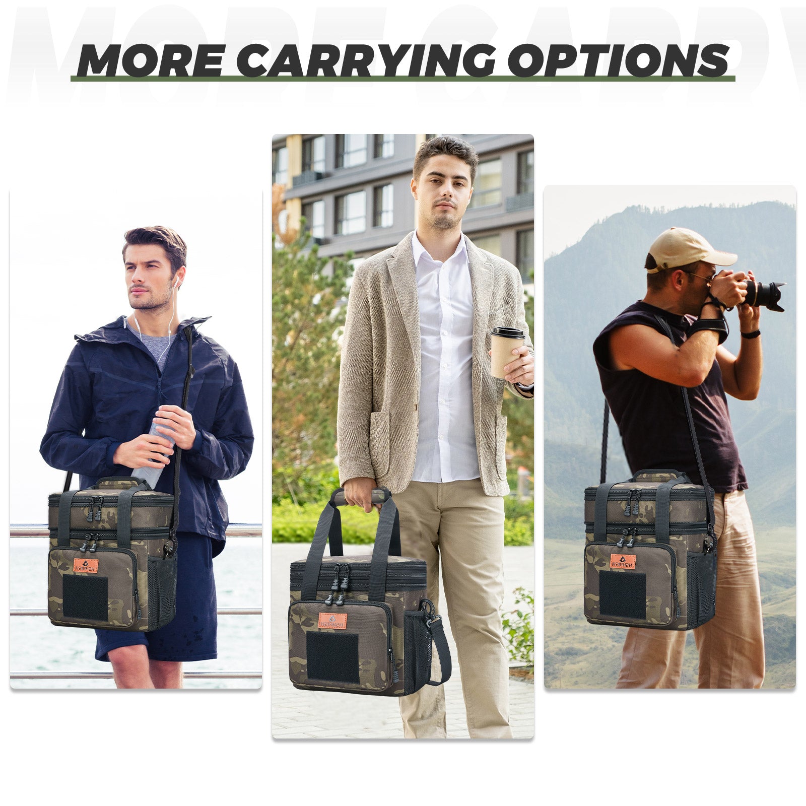 Holuxer Expandable Insulated Lunch Box for Adults, Large Durable Thermal Lunch Bag with Shoulder Strap, Soft Leakproof Cooler Bags for Men Work Outdoor Picnic Trips, 20 Can/16 L, Black-Camo