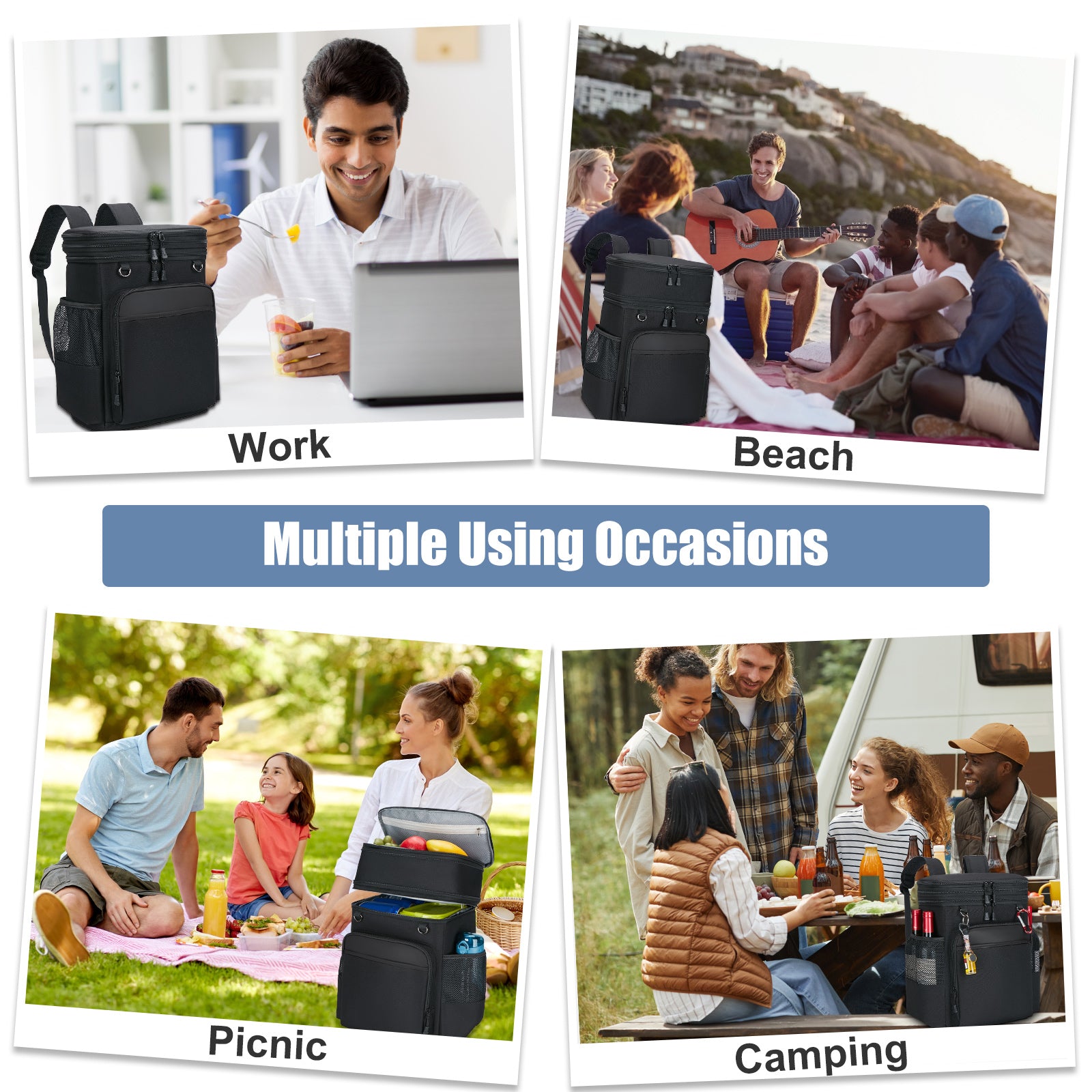 Holuxer Insulated Backpack Cooler Bags, 30L Waterproof Leakproof Soft Coolers, Large Expandable Lunch Back Pack, Heavy Duty Cooler Backpacks Rucksack, Portable Lunch Bag for Men/Women, Camping, Black