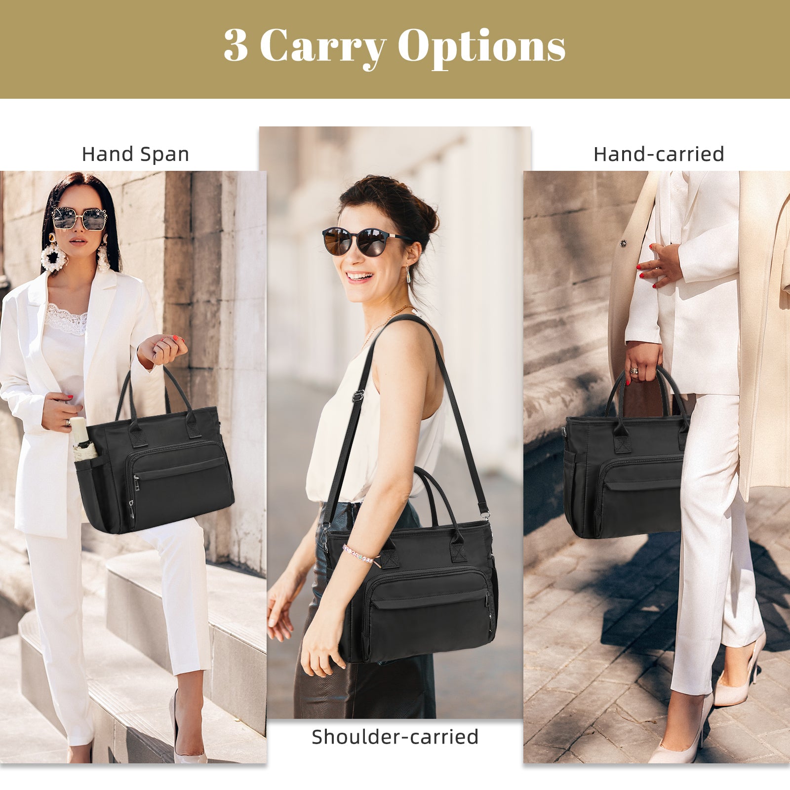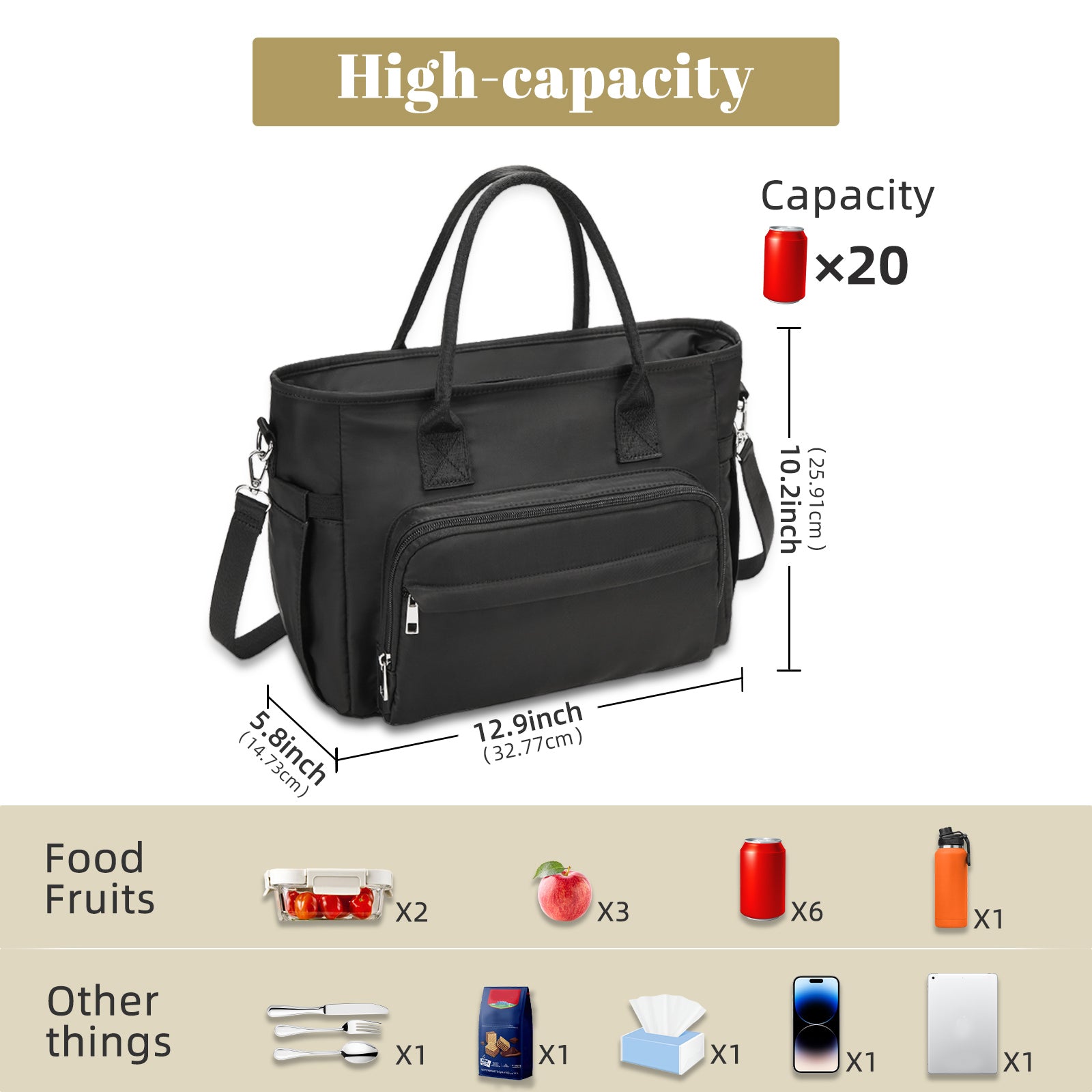 Holuxer Insulated Lunch Bag for Women, Fashion Handbag Lunch Tote Box, Reusable Thermal Cooler Bags with Shoulder Strap, Leakproof Storage Pockets for Working Shopping Picnic 12L, Black