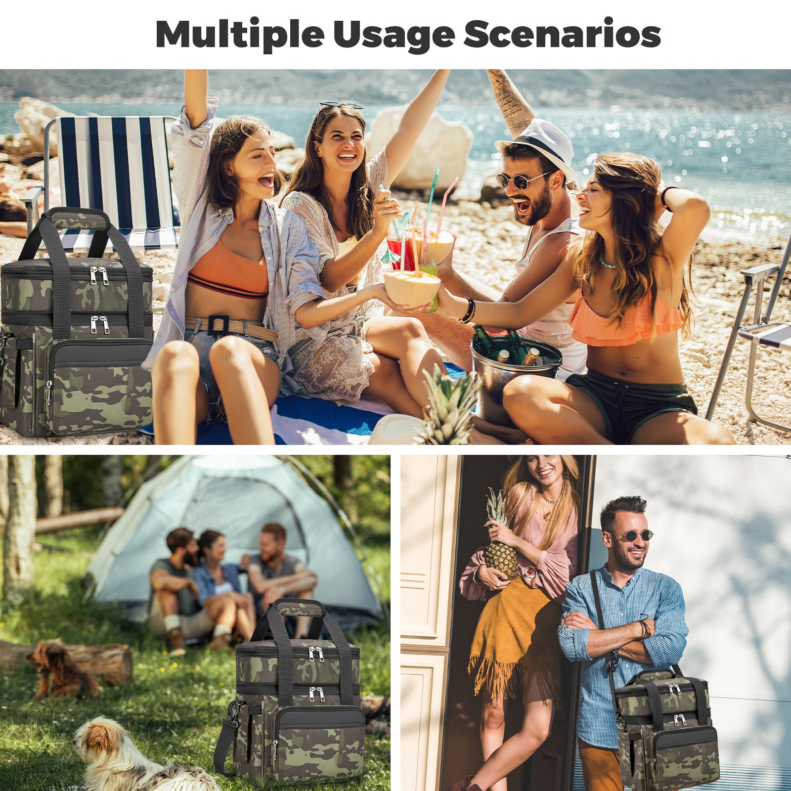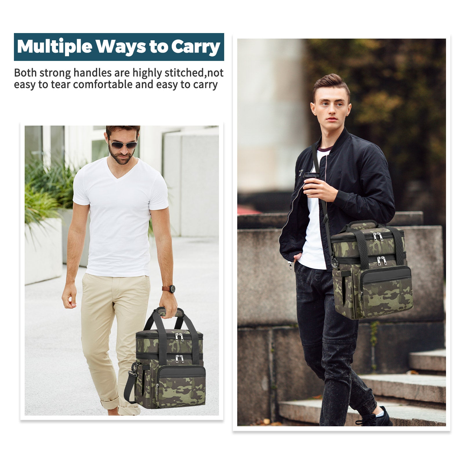 Holuxer Insulated Lunch Bag with Side Pocket for Women/Men-Double Deck Reusable Lunch Bags, Lunch Box Tote Cooler Bag Leakproof Soft Expandable-Large Lunchbox for Work/Adult/Picnic/Outdoor 15L-Camo
