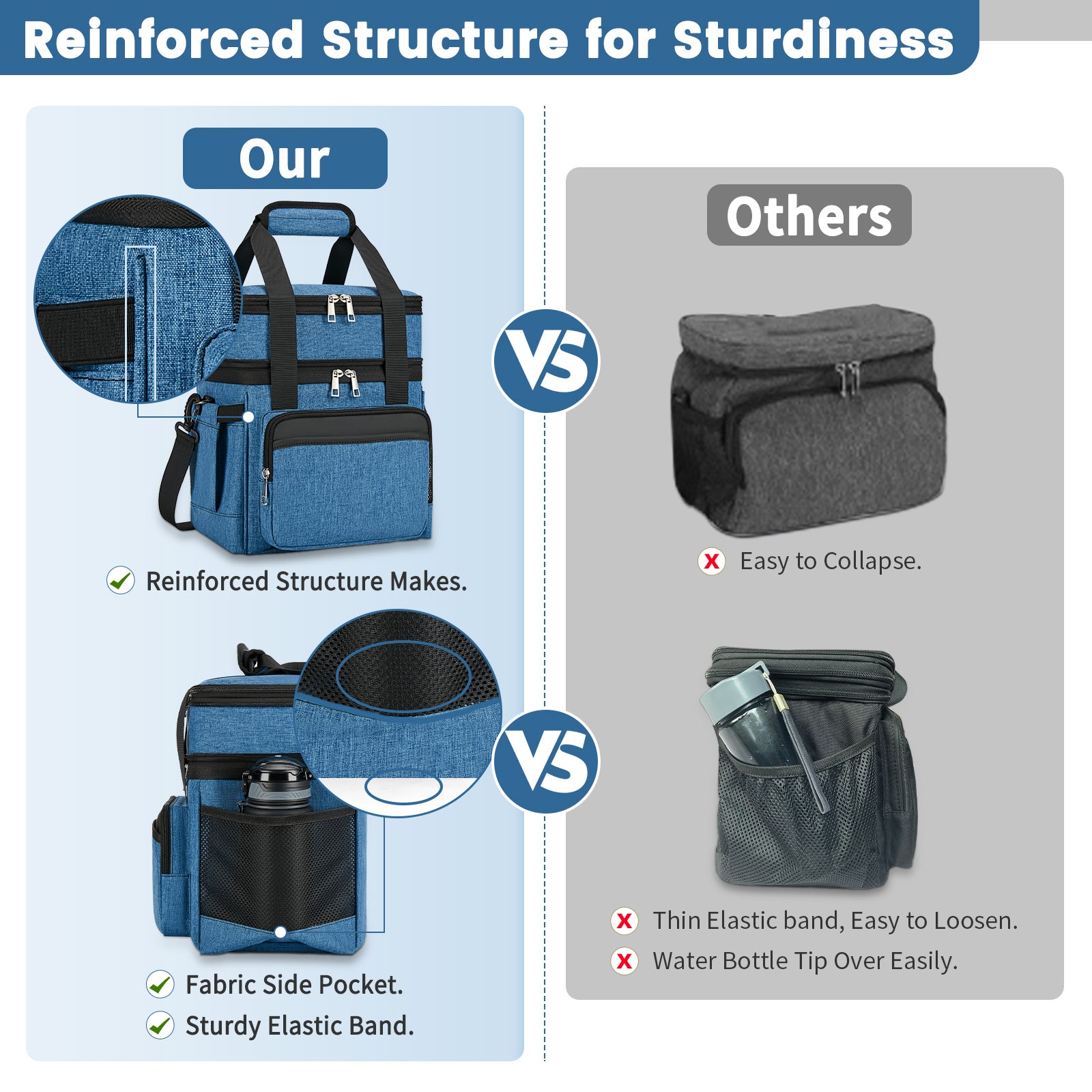 Holuxer Insulated Lunch Bags with Side Pocket for Women/Men-Double Deck Reusable Lunch Bag, Lunch Box Tote Cooler Bag Leakproof Soft Expandable-Large Lunchbox for Work/Adult/Picnic/Outdoor 15L-Blue