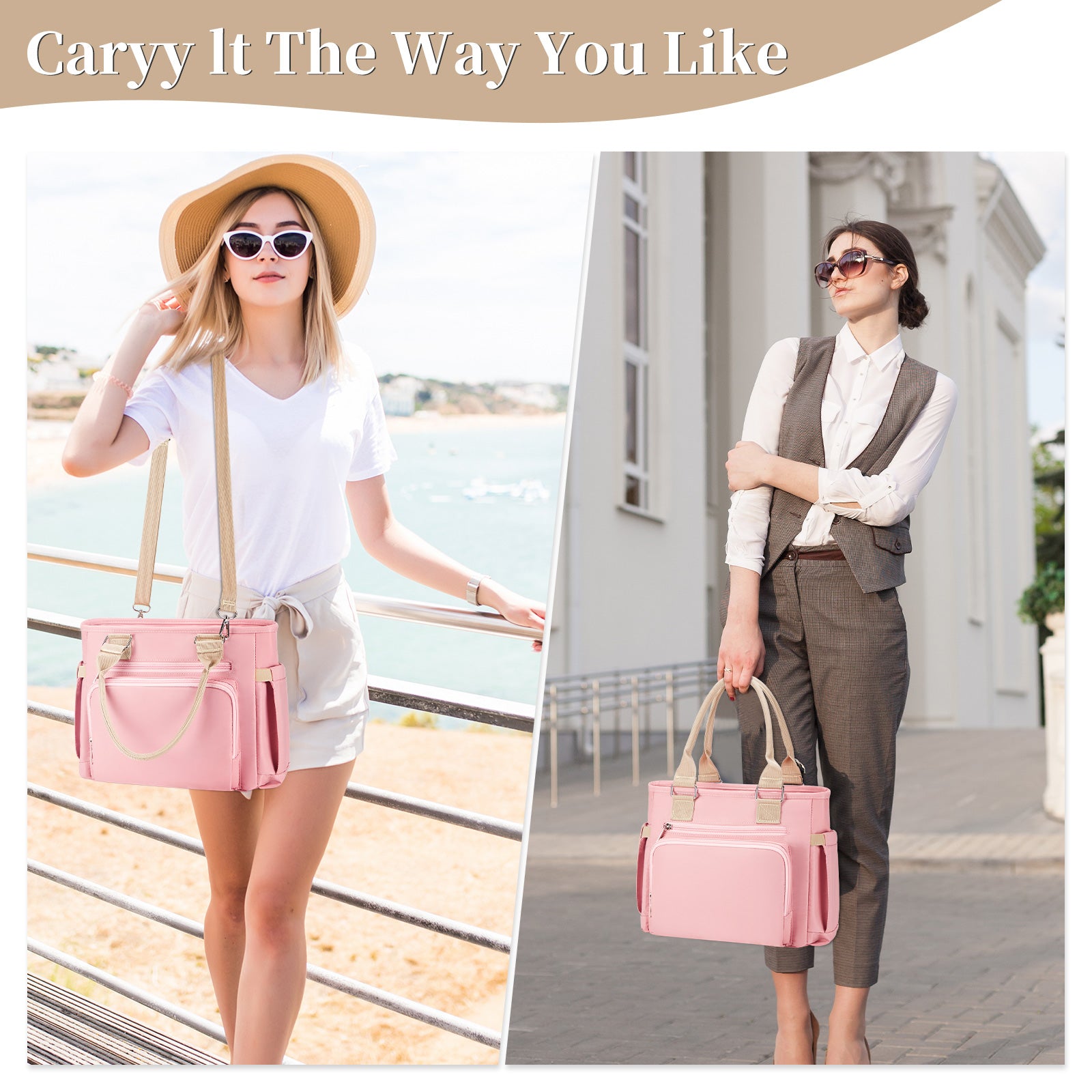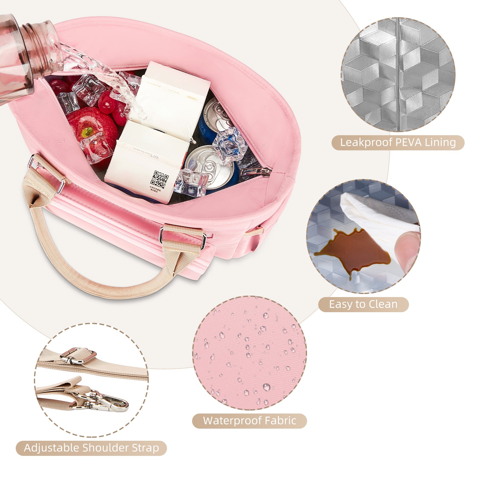 Holuxer Insulated Lunch Tote Bags; Fashion Handbag Lunch Box for Women, Large Reusable Lunch Bag for Adults, Simple Stylish Ladies Cooler Bags Portable Leakproof Lunchbox Handbags for Work/Picnic (Pink 12L)