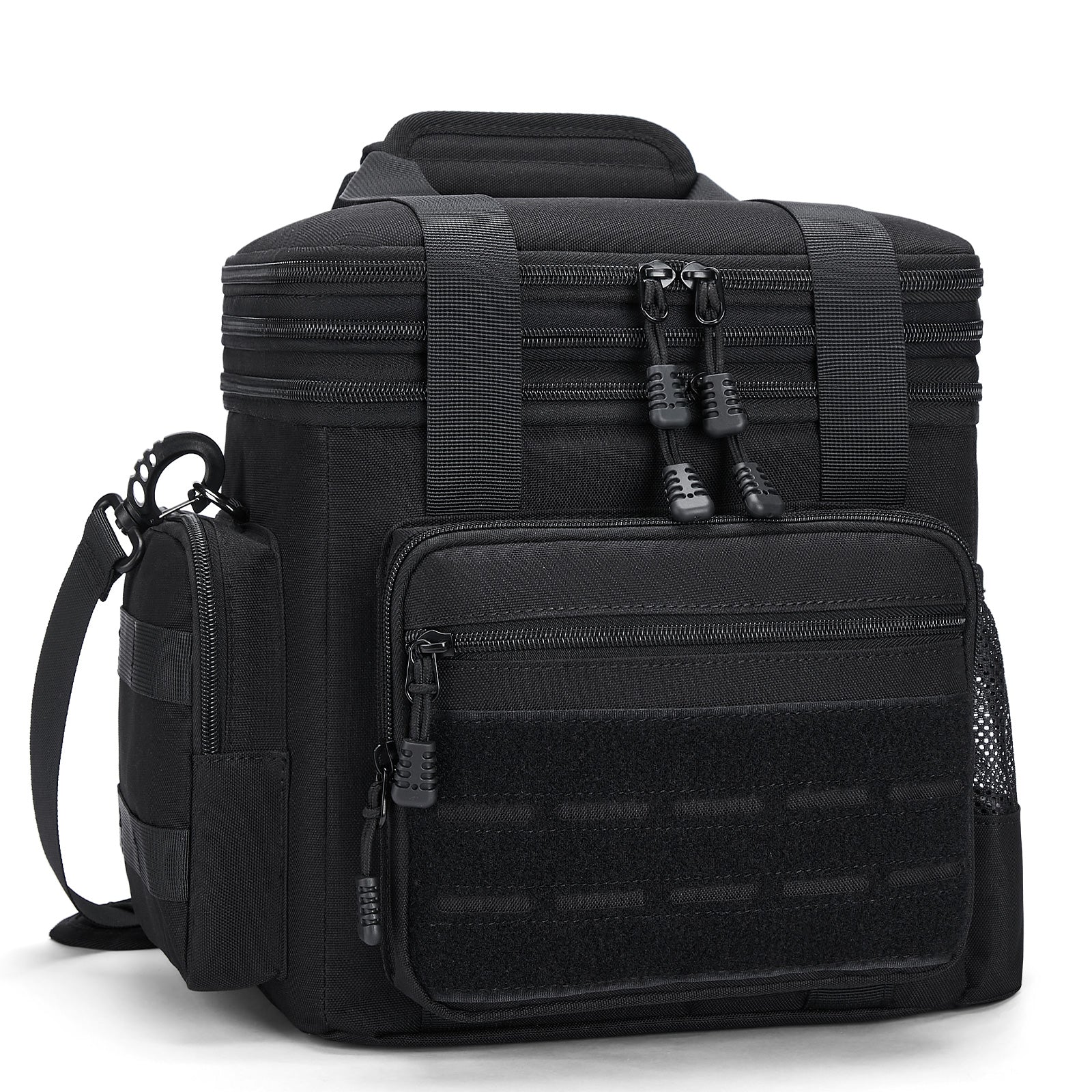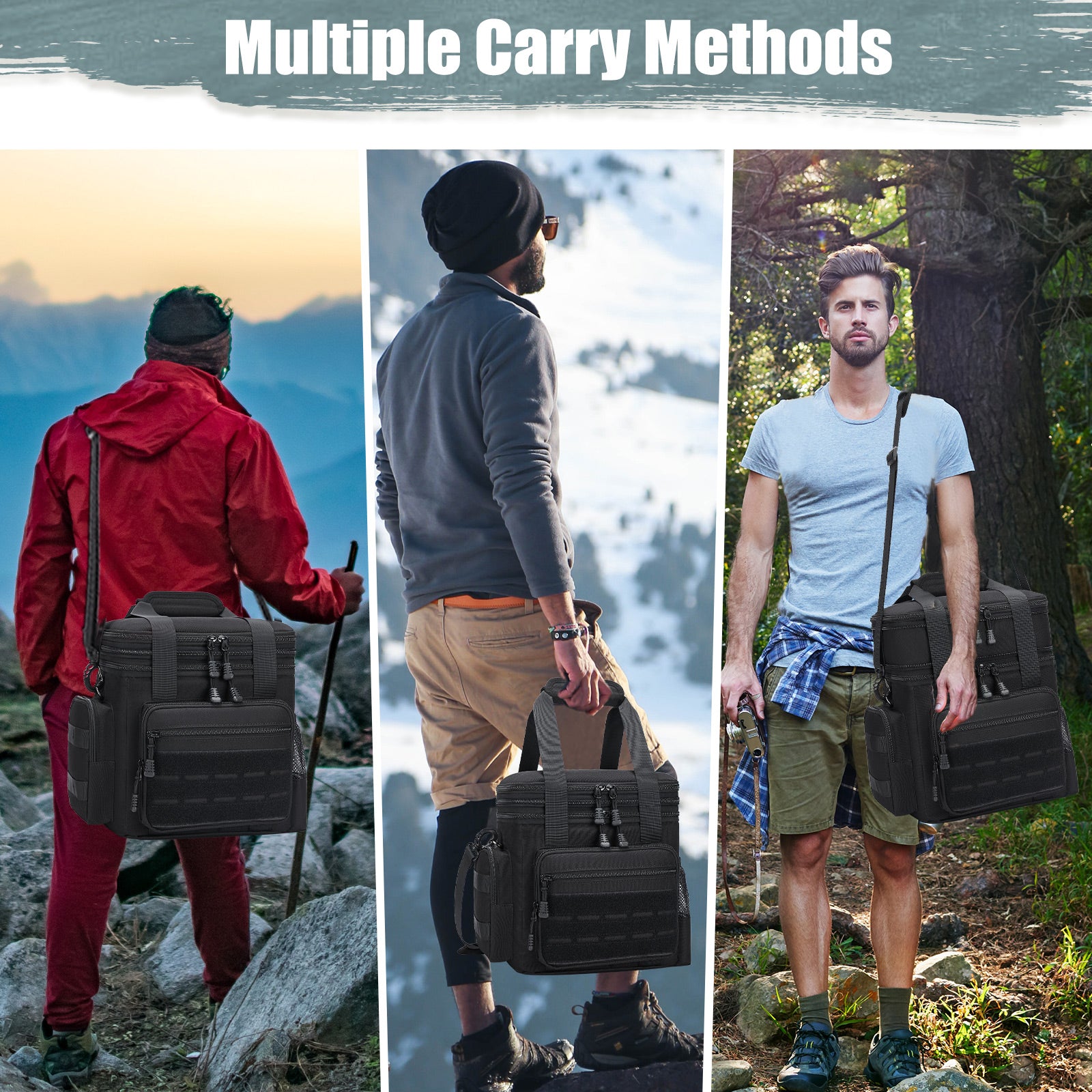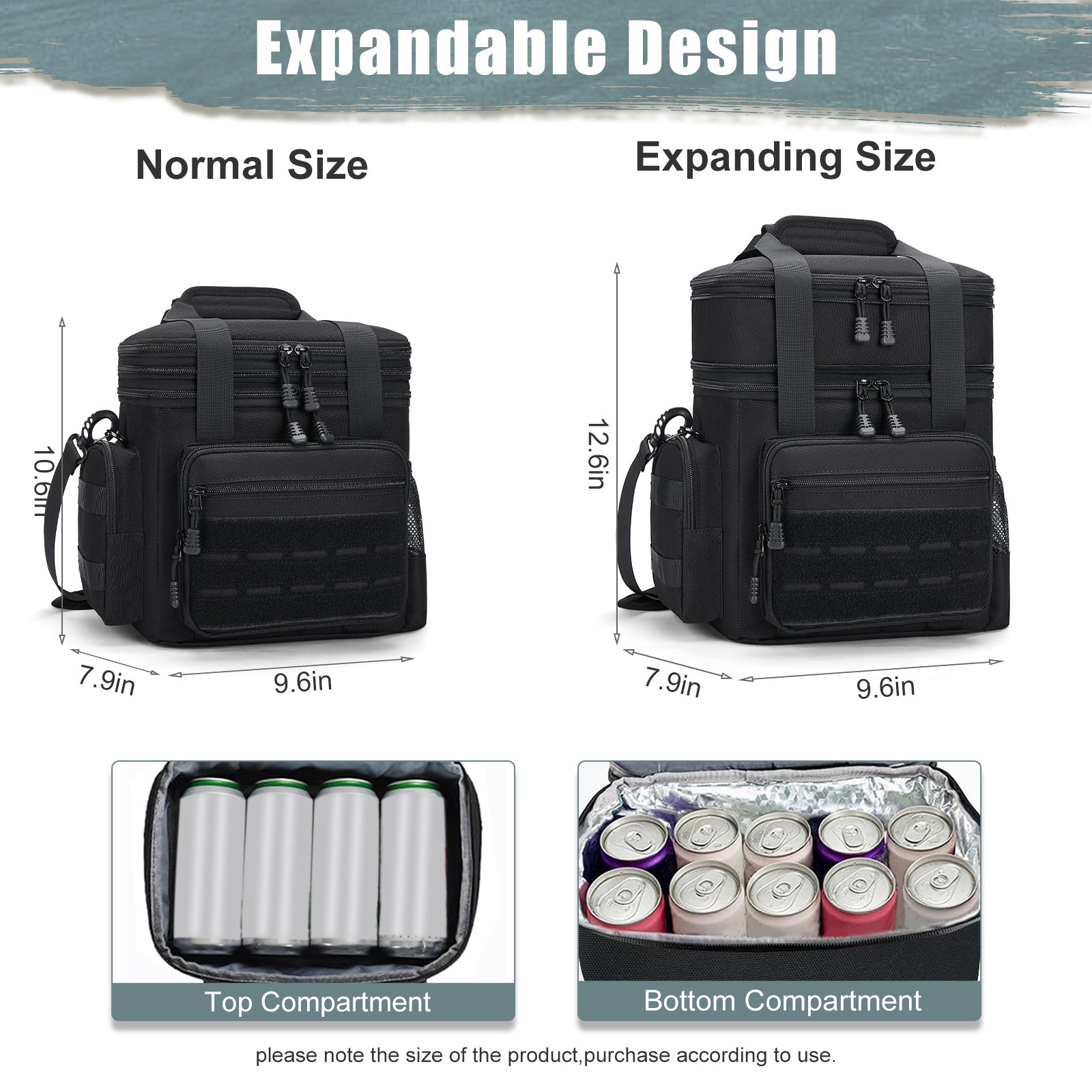 Holuxer Insulated Tactical Lunch Box for Men, 24 Can Double Deck Expandable Lunch Bag for Work Travel Daytrip Picnic Camping, Large Fashion Cooler Bags with Adjustable Shoulder Strap Organizer Black