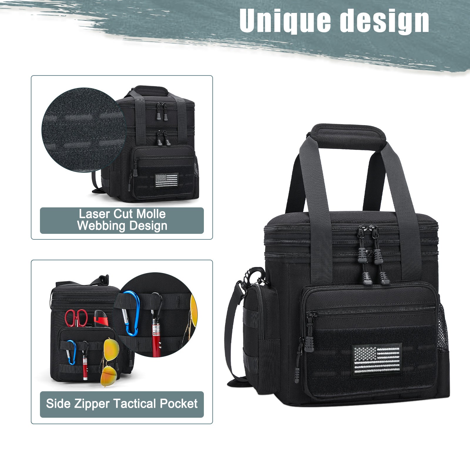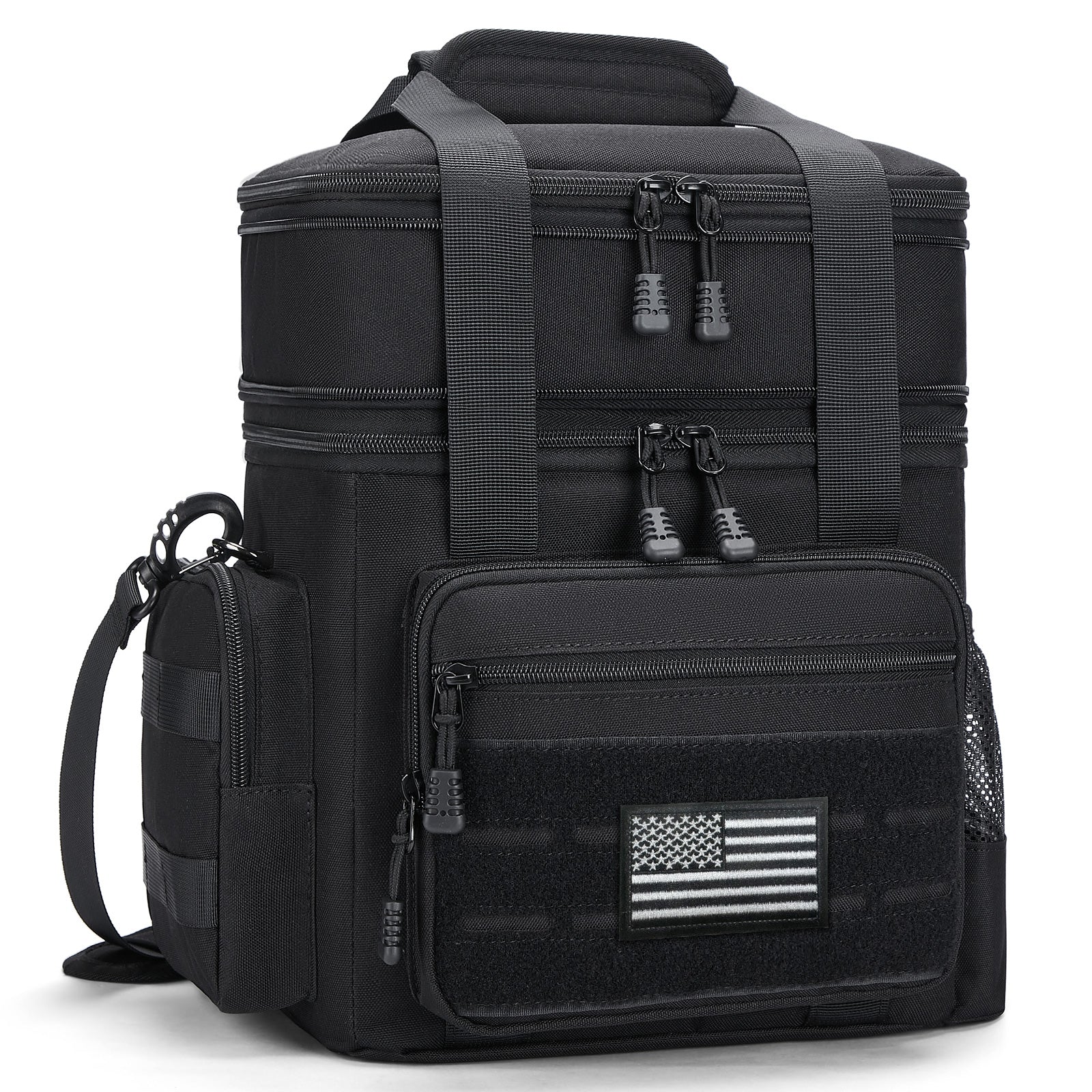 Holuxer Large Lunch Box for Men/Adults, Double Deck Expandable Camping Lunch Bags for Work Travel Daytrip Picnic Outdoor, Insulated Leakproof Cooler Bags with Flag Adjustable Shoulder Strap Black