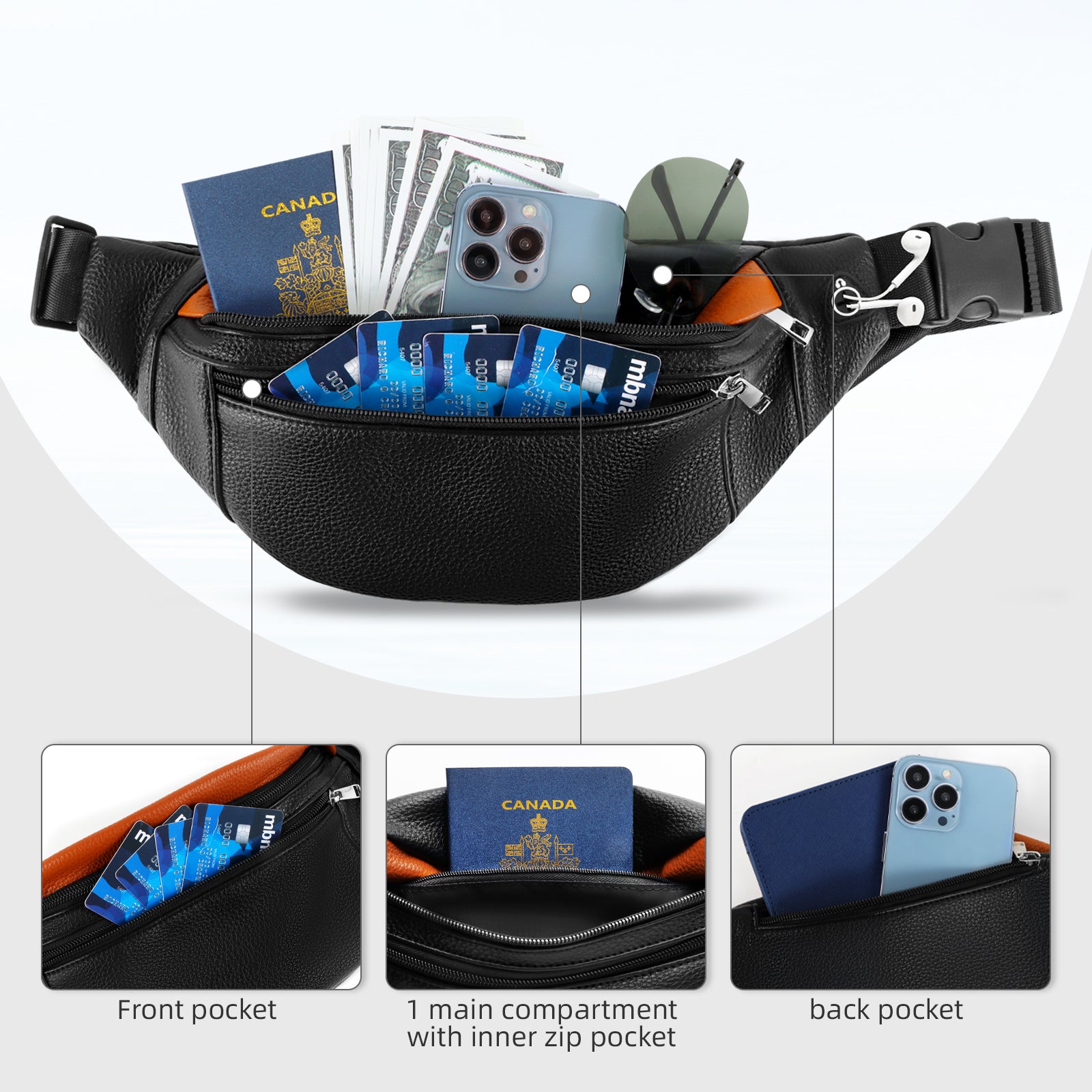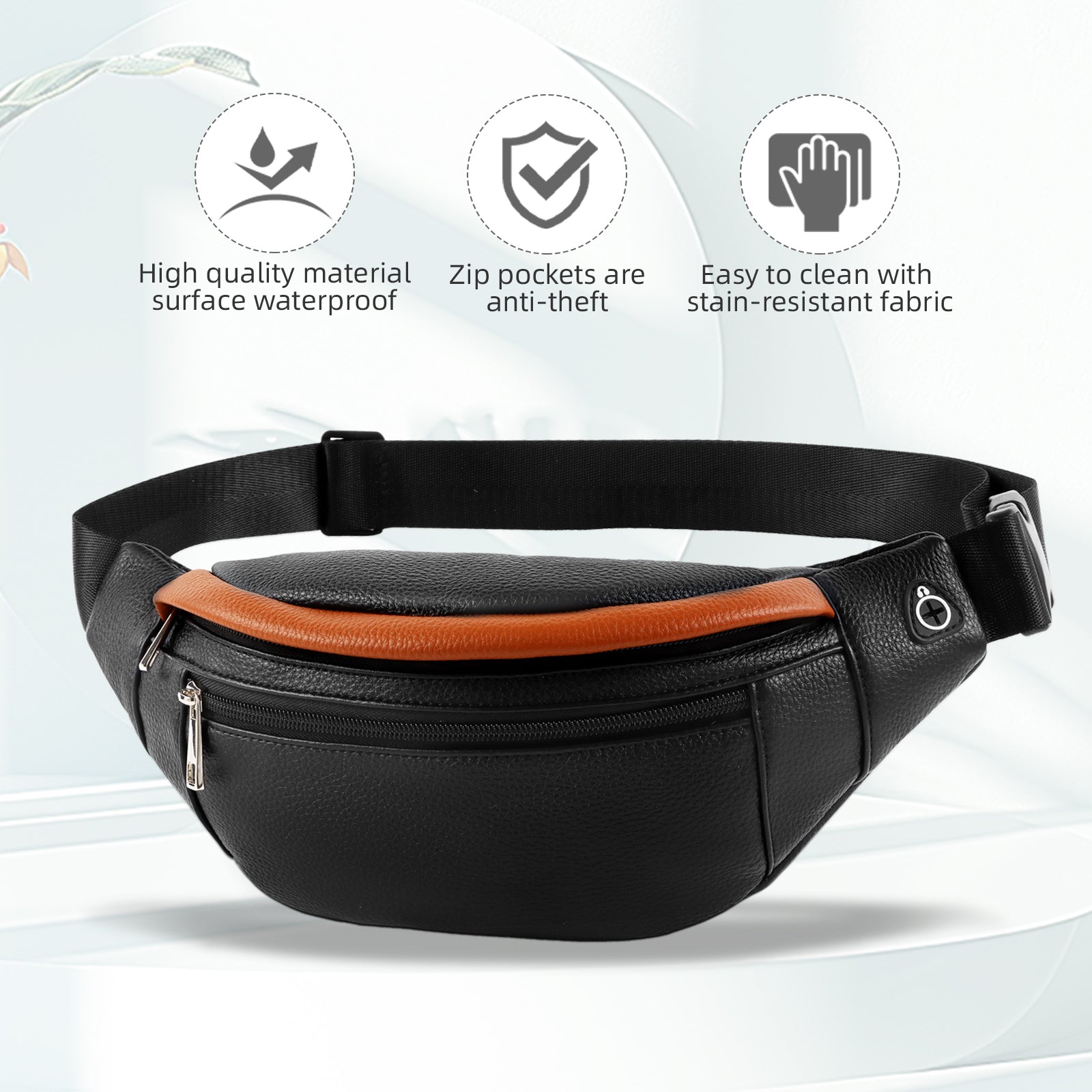 Holuxer Leather Fanny Pack Waist Packs for Women/Men, Fashion Waterproof Waist Bag with Adjustable Belt for Travel Sports Running black