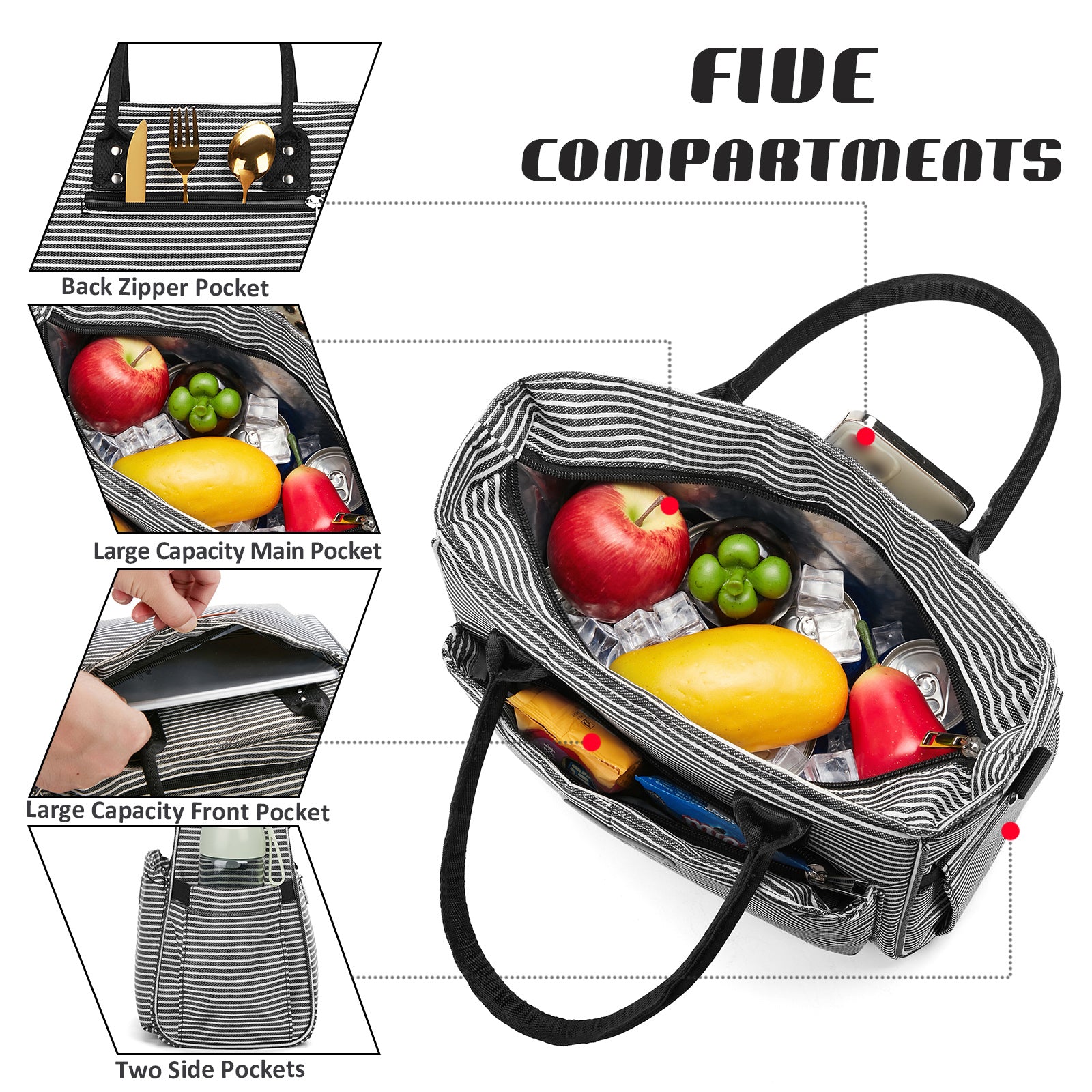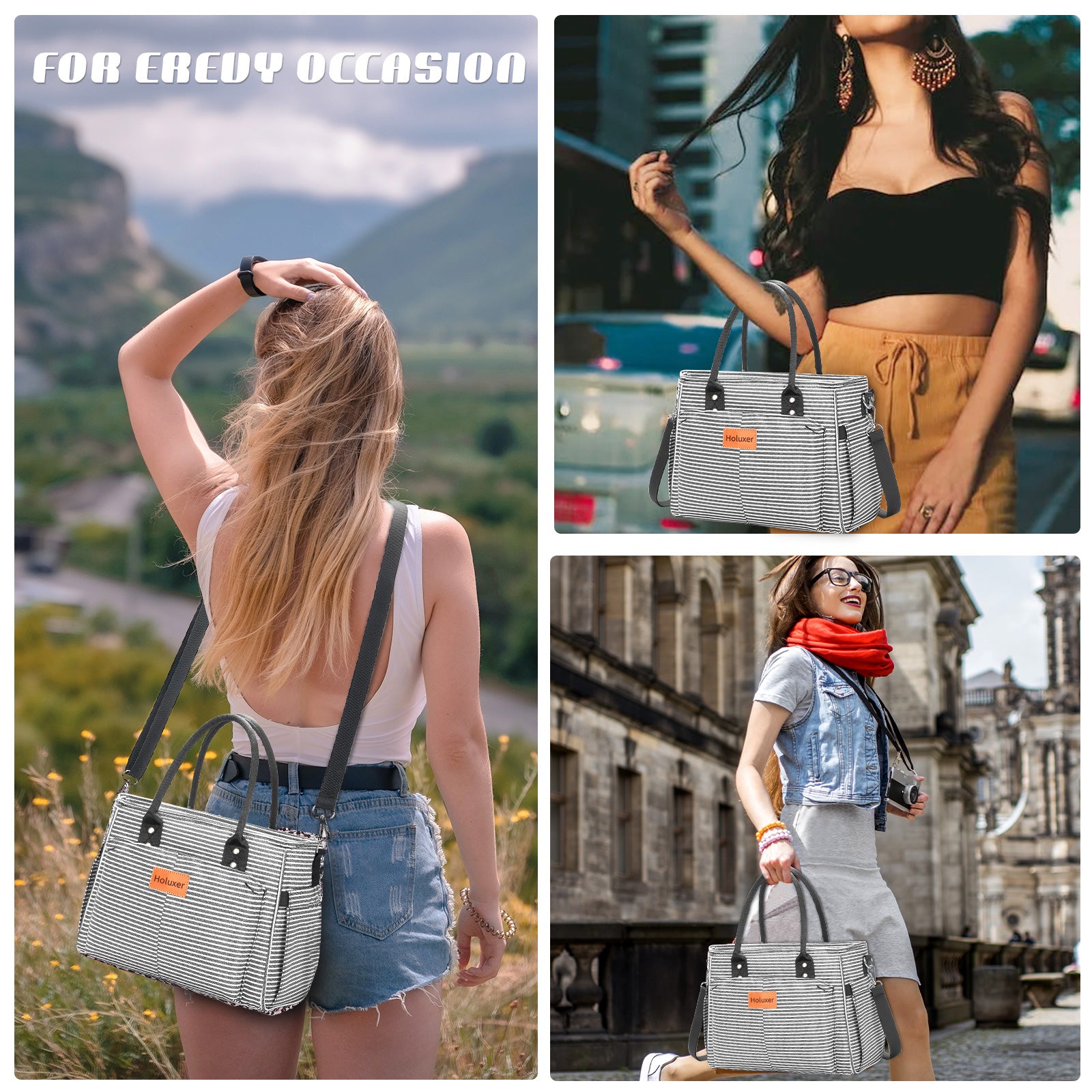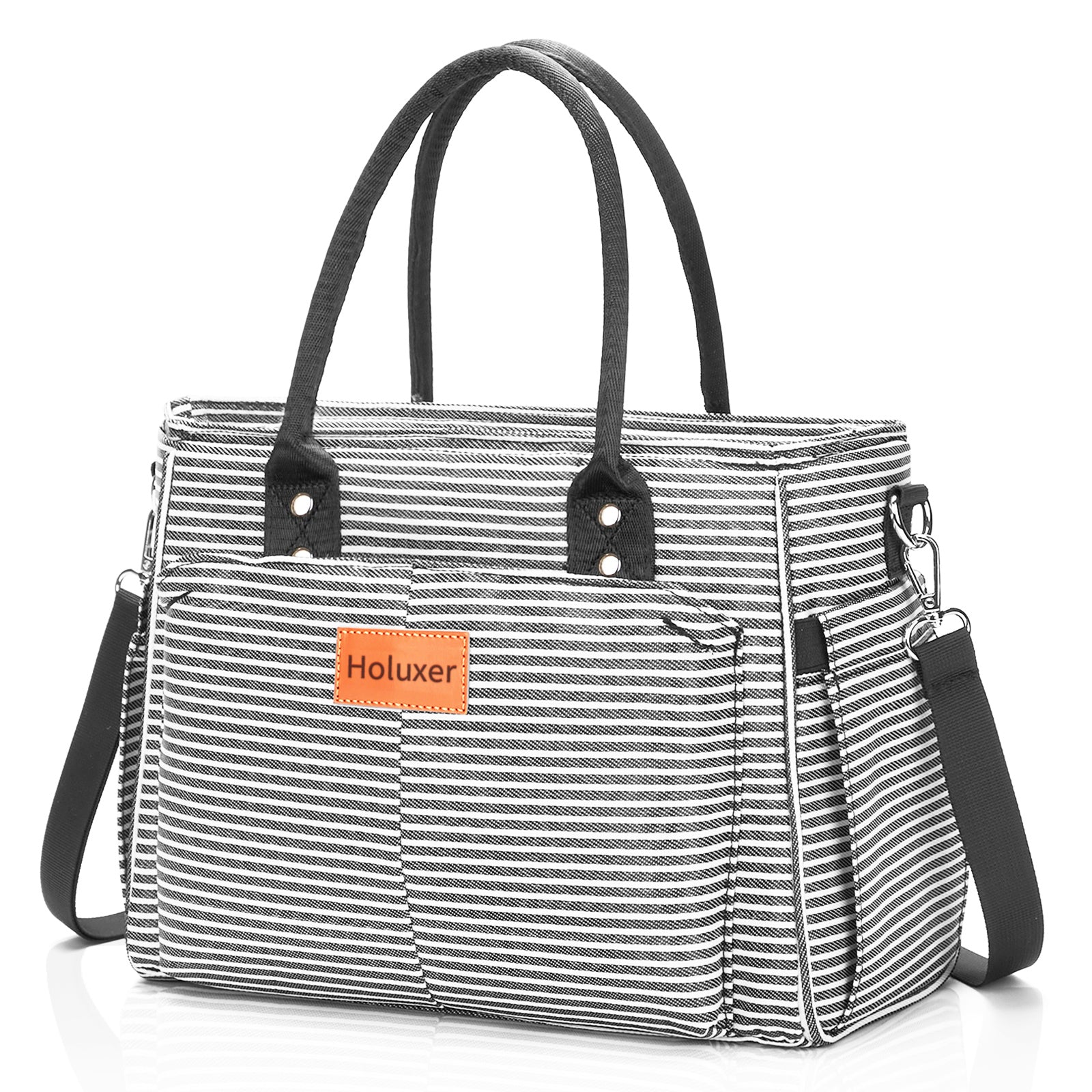 Holuxer Lunch Box for Women Cute Insulated Lunch Bags, Large Leakproof Cooler Purse with Side Pockets & Removable Shoulder Strap Womens Lunch Tote Bag for Work Picnic Beach (Stripe)