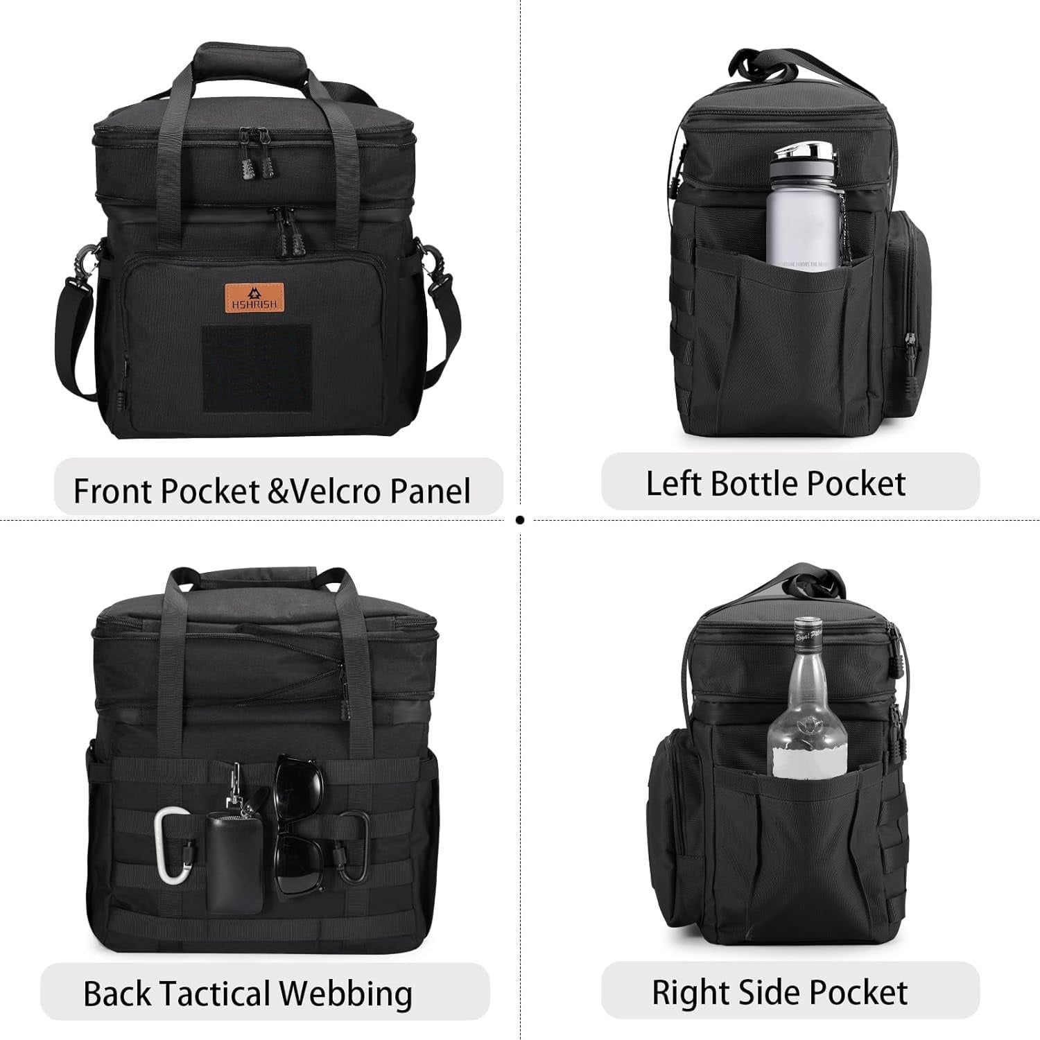Holuxer Tactical Lunch Bags, Large Expandable Insulated Lunch Box, Durable Waterproof Leakproof Cooler Bag for Adults/Men/Women/Work Outdoor Beach Trips, 20 Cans/15 L, Black